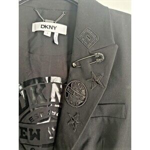 DKNY Women's Embellished Peak-Lapel One-Button Jacket Blazer Modern Chic Black 8