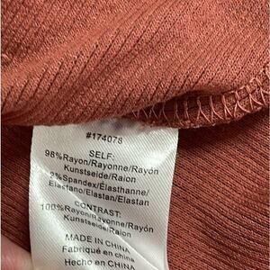 98%rayon, 2% spandex . Pre-owned great condition. pit to pit 14", length 20.5"