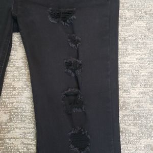 Dollhouse brand destroyed black denim overalls. Adjustable straps side button and zip closure skinny bottom with V opening 4 pockets plus one on the big. Size 11 junior length 29