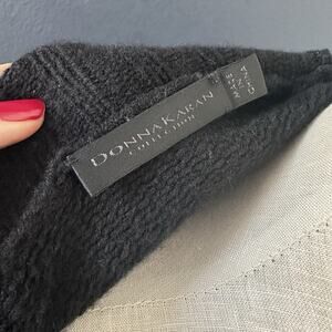 DONNA KARAN Black Label Cashmere Cardigan Silk Front Ties Long Sleeve Pockets