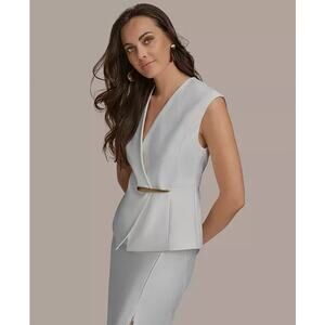 DONNA KARAN New York Women's V-Neck Gold Hardware-Trim Vest