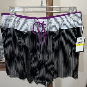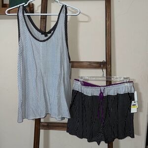 DONNA KARAN Sleepwear Set Tank Top & Shorts Size Medium Black White Purple NWT