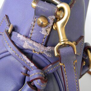 DOONEY & BOURKE FLORENTINE (LARGEST) LEATHER SATCHEL/CROSSBODY LAVENDER PURPLE!  I HAVE LOVED THIS BAG FOR MANY YEARS BUT ITS TIME TO LET GO!  THIS IS THE ORIGINAL MEDIUM SIZED FLORENTINE SATCHEL WHICH IS THE LARGEST SIZE THEY MAKE.  IT IS A RARE COLOR AND GORGEOUS!  THERE IS CORNER RUBBING AS SHOWN, ONE SIDE STRAP THAT HOLDS THE TASSEL SHOWS SOME EXTREME WEAR AS SHOWN.  OUTER LEATHER IS IN GOOD SHAPE, A FEW MARKS/HERE AND THERE.  COMES WITH THE CROSSBODY STRAP.  I WILL ALSO INCLUDE A DUSTBAG.  INSIDE IS CLEAN.  NO ODORS.