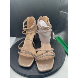 DREAM PAIRS Women's Gold Rhinestone Block Heels Square Open Toe Ankle Strap Sz 7