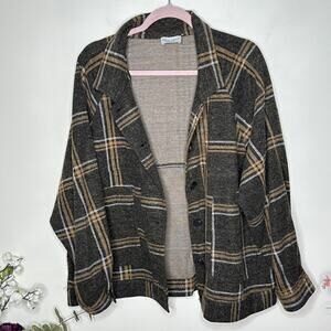 DRESS FORUM Oversized Plaid Shirt Jacket Shacket Gray Tan Soft