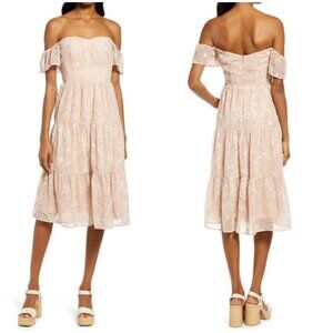 💕DRESS THE POPULATION💕 River Off the Shoulder Tiered Hem Dress ~ Blush XS NWT