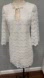 Crew neck 3/4 length lace sleeves with scalloped trim Keyhole front with tie closure