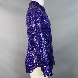 DRIES VAN NOTEN long sleeve shirt in a purple viscose featuring an all over sequined pattern, point collar and hidden placket closure. Note: this garment has been professionally altered, please double check measurements.