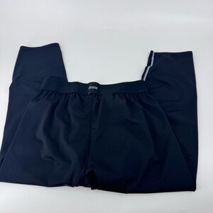 Black athletic compression pants with a white DRSKIN logo. Ideal for workouts.