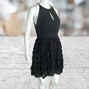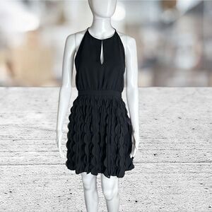 DVF Black Sleeveless Halter Neck 3D Bottom Dress