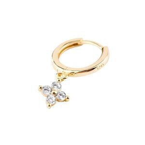These classy gold earrings feature snap hoops and delicately cut rhinestones in the shape of a four-petal flower. This simple face-framing accessory is the perfect addition to any outfit.