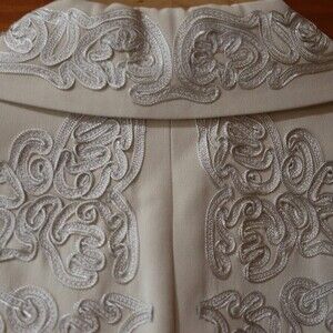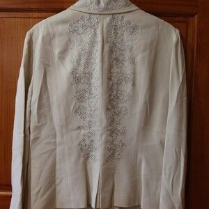 Dana Buchman 100% Silk Cream Ribbon Embroidered Skirt Suit 12/14