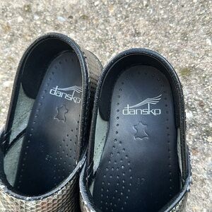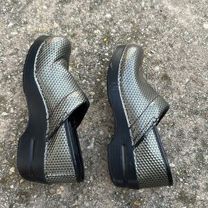Dansko Metallic Sequin Print Closed Back Clogs Shoes Siz 37 Leather Nursing Work