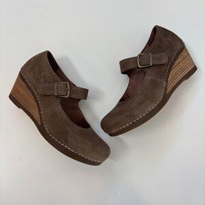 Dansko Sandra Suede Wedge Mary Jane Shoes Taupe Brown EU 40 US 9.5-10