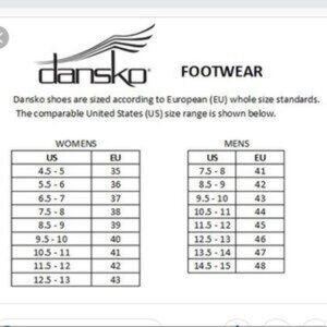 Care: Wipe with a clean, damp cloth. To maintain, use Dansko Leather Cream.