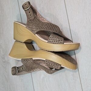 Dansko Women Jacinda Leather Wedge Heels Sandals shoes sz 39/8.5-9