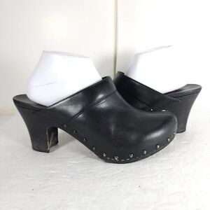 Dansko Women's EU40 US9-9,5 Leather black Distressed Studded Platform Clogs Shoes.