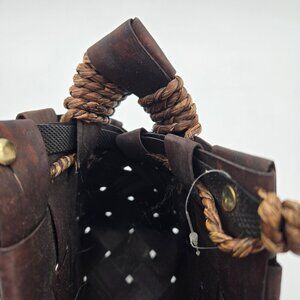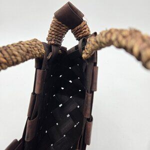 Dark Brown Wood Basket Weave Handbag Womens Medium Handles Coastal Cottagecore