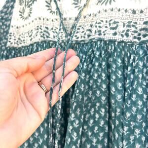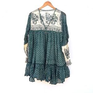 Daughters Of India Rooh Mini Dress Pine Long Sleeve Turquoise Medium Cotton