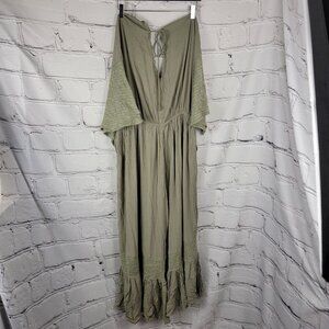 Davi and Dani Wide Leg Maxi Illusion Crop Jumpsuit Olive Green Boho Festival