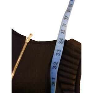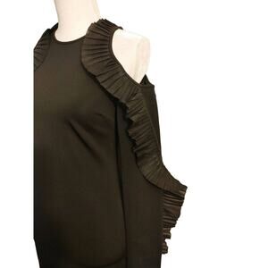 Step out in style with this stunning David Koma pleated ruffle cold shoulder dress! This bodycon mini dress is designed to hug your curves in all the right places. It features long sleeves with chic cutout cold shoulders, adorned with playful pleated ruffles down the side. The exposed zipper down the back adds a touch of edgy sophistication. Although the size and material tag are missing, the dress feels like a luxurious blend of viscose, polyamide, and elastane. Based on the measurements, it fits like a size XS according to the David Koma size chart. (See chart and measurements in the pictures)