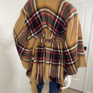 David & Young Camel Plaid Ruana With Belt one size. #253