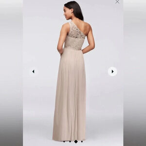 Illusion one shoulder corded lace bodice with ribbon belt at waist
