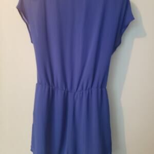 Decker Women's Royal Blue Sheer V-Neck Romper Small- This Royal Blue romper is light, sheer and has two side pockets with a nylon like lining