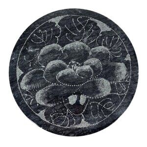Decorative Black Granite Marble Round Jewelry Box With Floral Carved Lid 4x1.5"
