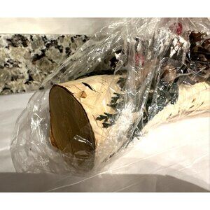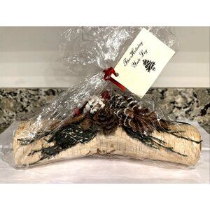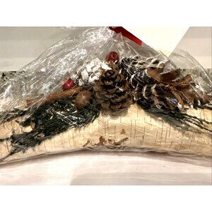 Decorative Holiday Yule Log Christmas Centerpiece 11" Birch, Pine Cones, Berries
