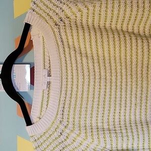 Delia's Vintange Striped Cropped Sweater Lime Green And White Size Medium