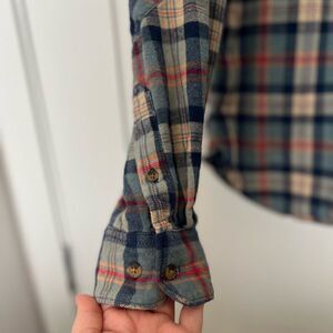 Denim & Flower Mens Shirt Large Flannel Button Down Plaid Long Sleeve Blue Red