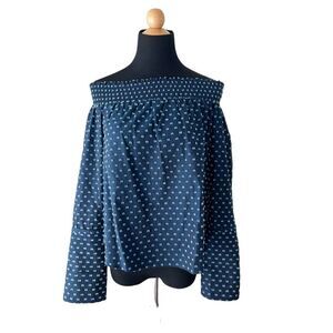 Derek Lam 10 Crosby Navy Clip Dot Off the Shoulder Top Size 2