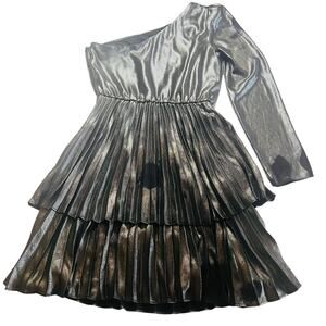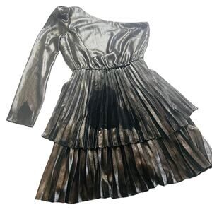 Derek Lam Metallic One Shoulder Pleated Dress Size Black Silver Size EU 36
