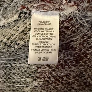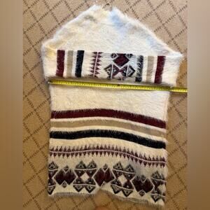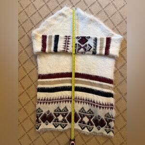 Design Lab Lord & Taylor ivory open front cardigan with an angora wool appearance.  Long sleeved with black, burgundy, and gold design on the bottom.  Super soft and very cozy.  Very gently worn maybe 3 times.  EXCELLENT CONDITION WITH NO RIPS STAINS OR TEARS