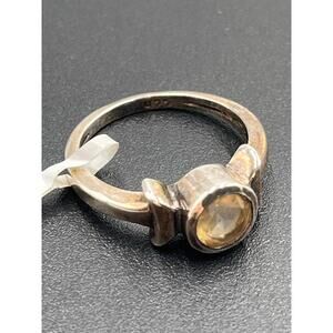 Designer Signed Sterling Silver Round Bezel Set Citrine Ring Sz 7.25