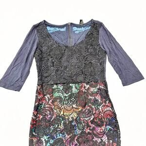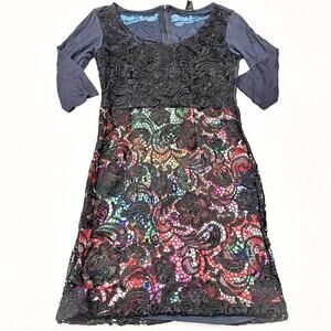 Desigual Floral 3/4 Sleeve Dress Flower Lace Overlay Pattern M37V2881 Size L