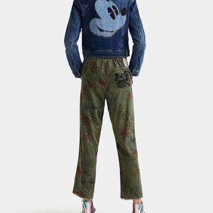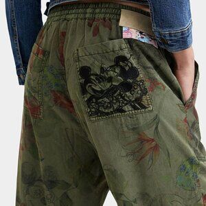 Desigual x Disney Mickey Mouse Tencel Pants.  Made from Tencel™, these joggers are sustainable and very comfortable. In a khaki color and floral camouflage effect with a khaki tint.  They are in excellent preowned condition.