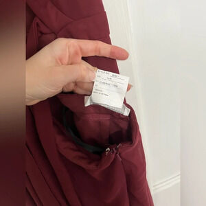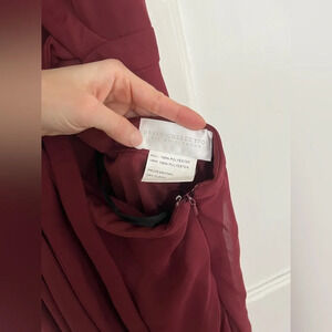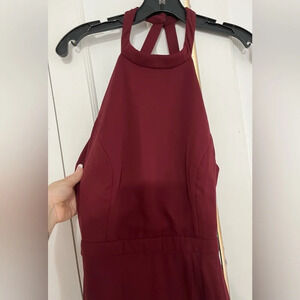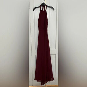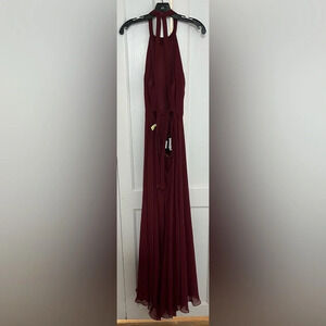 NWOT Dessy Collection Stand Collar Halter Maxi Dress With Criss Cross Open-Back - 3082 IN CABERNET