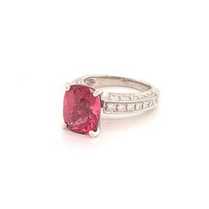 Natural Finely Faceted Quality Tourmaline Rubellite Diamond Ring 3 Platinum 3.72 TCW Certified $4,950 910749