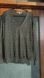 Description: Black with gold shimmer lame Ania Bis knit top by Diane Von Furstenberg. Size L. V neck. Banded waist. Blouson fit. Lightweight, almost sheer material. The shimmer is really gorgeous and sexy. Hard to capture in photos but you can see it somewhat in the video.