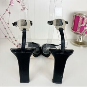 Diba Black Leather Open Toe Ultra High Block Heel Ankle Strap Sandals Size 8 M