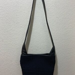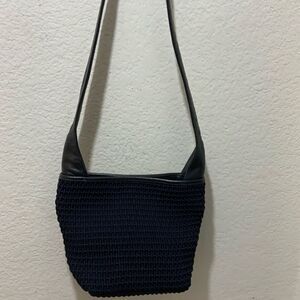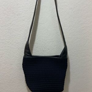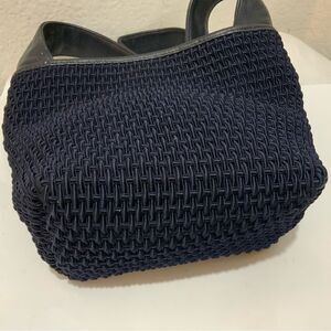 Dillard's Women’s Woven Navy Blue Shoulder Bag Purse Leather trim