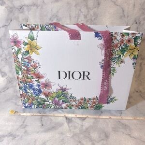Dior Gift Bag in Colored Floral design with Pink Ribbon - 9.5Lx7W - NEW