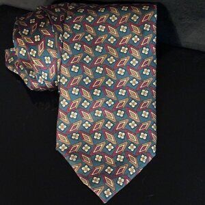 Dior Rare Mid Century Modernist Teal Red Diamond Mod Silk Tie Vintage Retro Gold