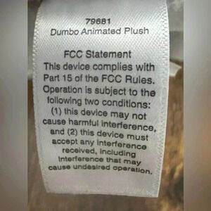 Adorable Disney Baby animated Dumbo. Very soft plush. If you press Dumbos foot, Dumbo lights up, plays music, and the ears move. Perfect baby Disney toy! Like new condition. Works perfect.