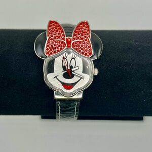 New without box Great condition Beautiful Disney Vintage Smiling Happy Minnie Mouse Red Stone Ears Watch Working, still has the paper cover on the face