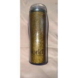 Gold glitter Disney Parks authentic tumbler. The clear outer part says Walt Disney World and has the silhouette of Cinderellas castle. I seem no scuffs or scratches on the exterior but I can take more photos if requested.