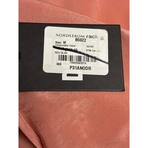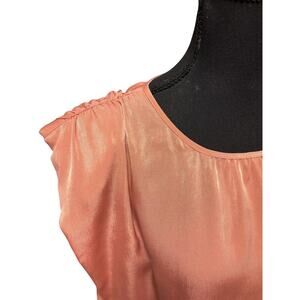 Dkny NWT Women's Glossy Sheen Ruched Shoulder Woven Top Size M Peach Feminine