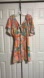 Polyester flare sleeves with gathered elastic back. Tie front at chest. Lined. Satiny material. Peachy orange, pink, blue, yellow & green. Approximate Measurements Laying flat: pit to pit 18” with gathered elastic back - shoulder to hem 37” - sleeves. Preowned good with tag condition please check all pictures.